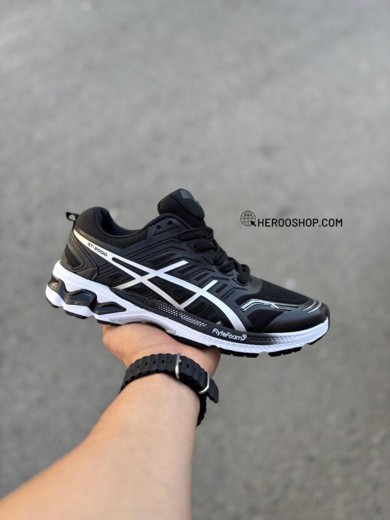 کتونی اسیکس رانینگ سایز بزرگ/ مشکی سفید/ MS/ بزرگ پا/کد305