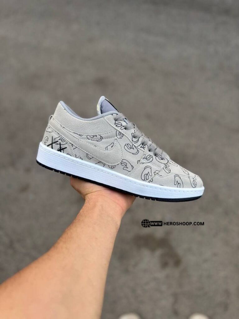 کتونی جردن وان لو / رنگ مشکی تمام کف سفید / کد 147